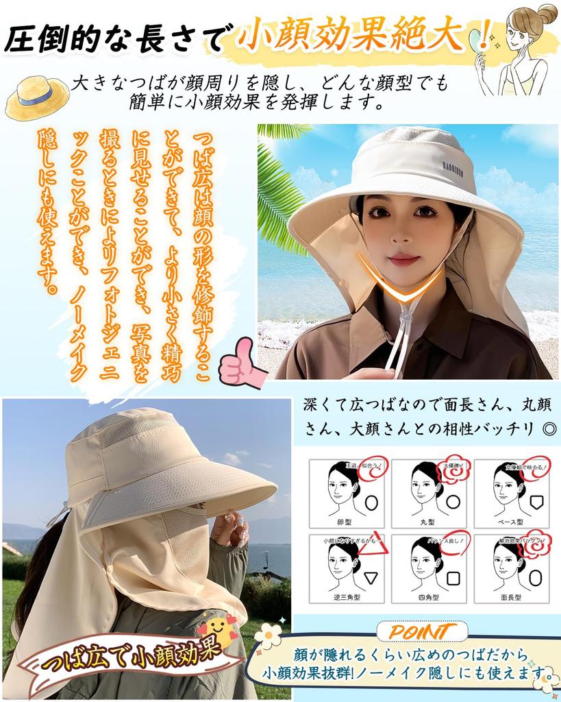 🌬️ [Дышащая сетчатая структура для нулевой духоты] Сетка используется на макушке шляпы с широкими полями и на маске для лица, чтобы быстро отводить пот и предотвращать духоту. Предотвращает липкость на лбу и волнистую челку, и предотвращает осыпание макияжа! Маска для лица и рот также сетчатые, что облегчает дыхание и выдыхание.. Женские шляпы — это шляпы с защитой от УФ-лучей, которые сохраняют комфорт даже под жарким летним солнцем, что делает их идеальными для людей, которые легко потеют!