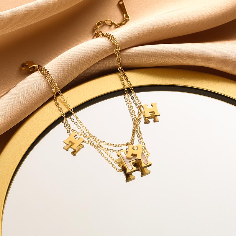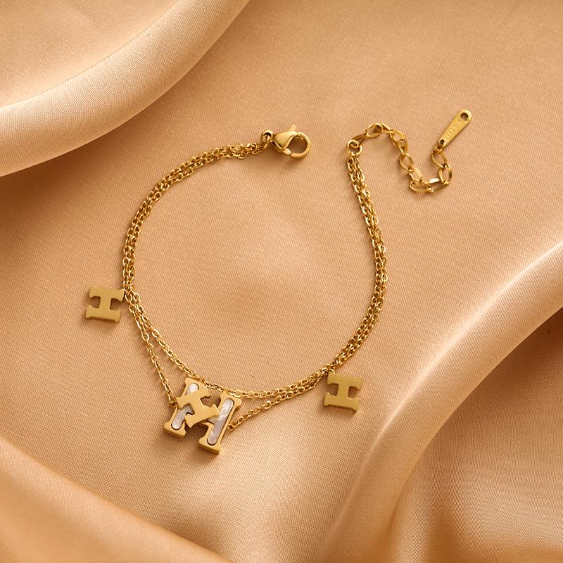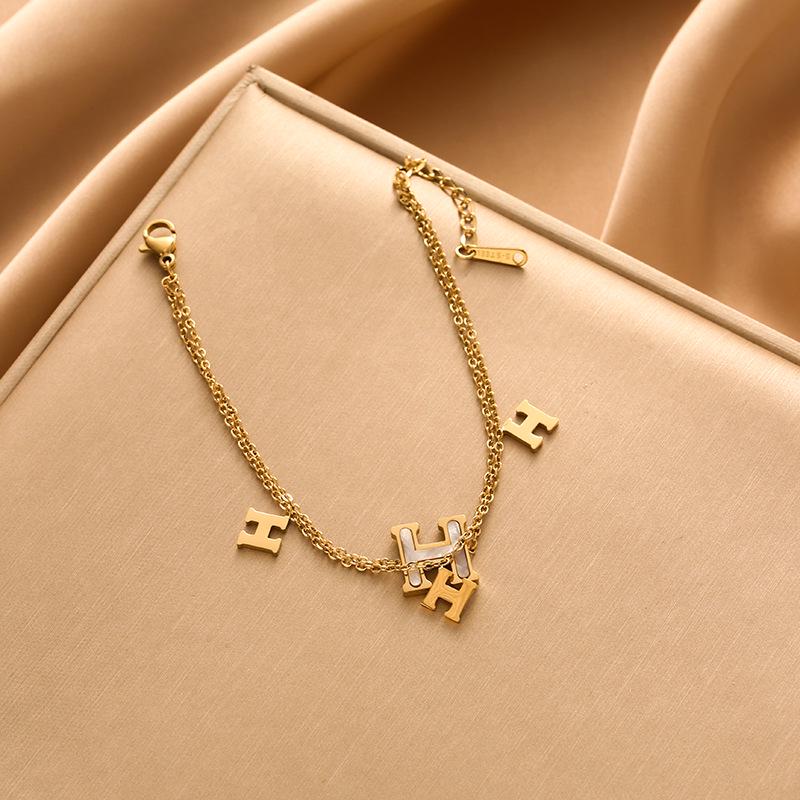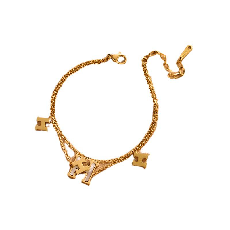 2023 Браслет из титановой стали с двойной цепочкой и H-подвеской - Модный, Прочный, Простой дизайн