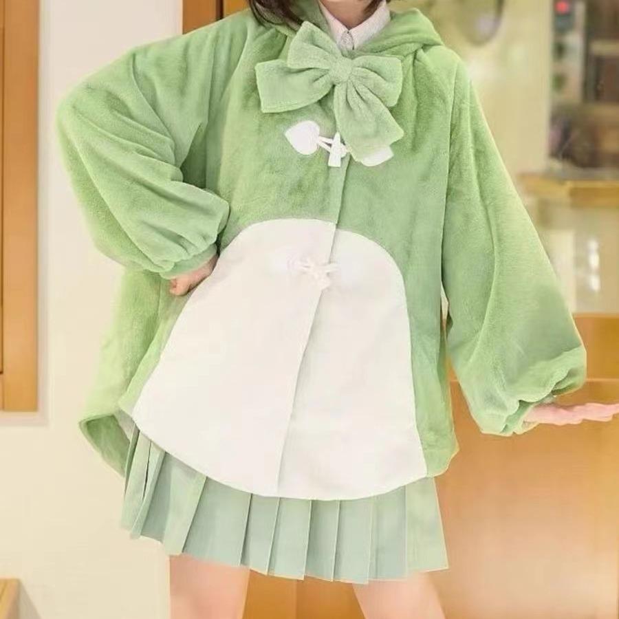 Милый плащ-накидка из плюша с капюшоном в виде динозавра в стиле лолита - Уютное бархатное мягкое пальто для девочек для осенне-зимнего тренда.