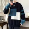 Мужской модный осенне-зимний вязаный свитер свободного кроя с цветными блоками