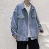 Мужская джинсовая куртка свободного кроя: Повседневный и модный корейский стиль с дизайном в технике пэчворк для весны и осени — купить товар онлайн с бесплатной доставкой по всему миру!