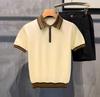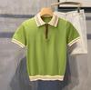 Мужская футболка-поло с коротким рукавом из ледяного шелка в корейском стиле на молнии до половины