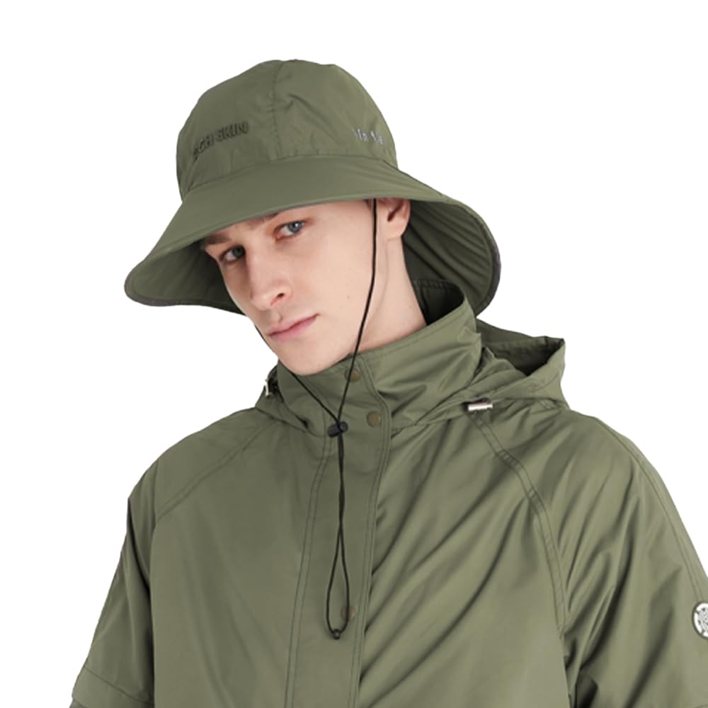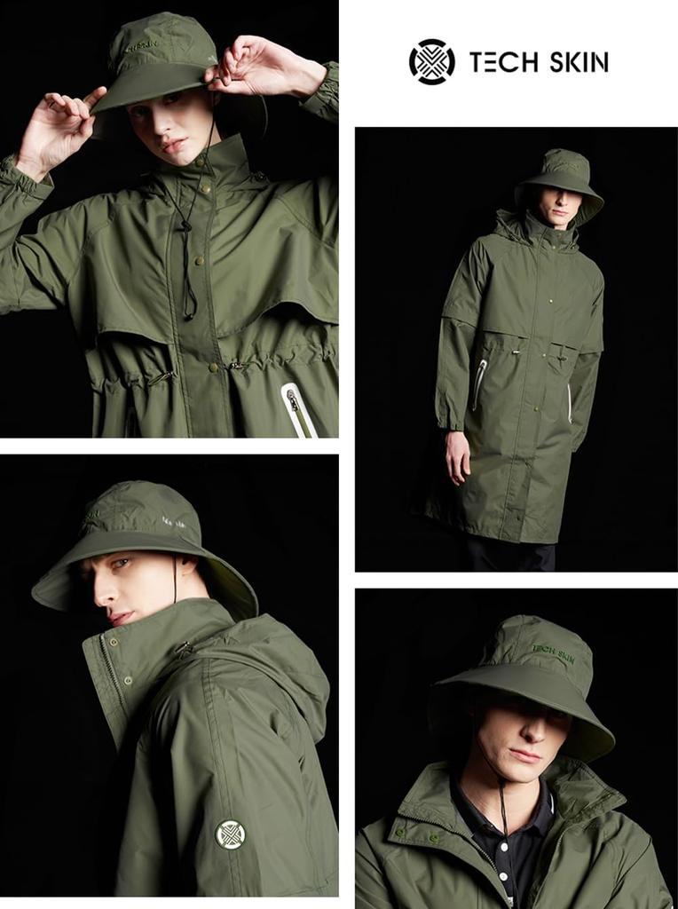 [ТЕХНИЧЕСКАЯ КОЖА] Шляпа от дождя для гольфа, Водонепроницаемая шляпа-ведро, Унисекс, Легкая, Дышащая, Герметичная, Непромокаемая, Стильная шляпа, С логотипом Tech Skin (хаки)