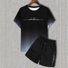 Летний комплект с градиентным цветом, с коротким рукавом и шортами, с 3D-принтом, простая футболка с градиентной надписью, комплект из двух предметов, мужская спортивная одежда