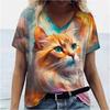 Женские футболки с V-образным вырезом и коротким рукавом с принтом животных, летняя одежда, милые мультяшные футболки с кошкой, женские футболки оверсайз, одежда, топы