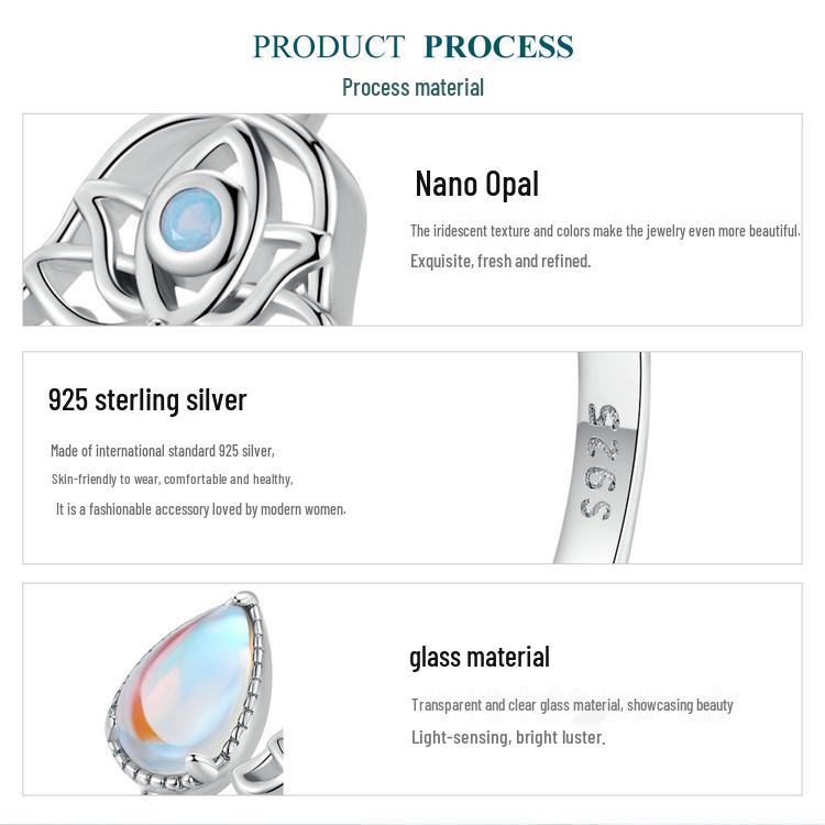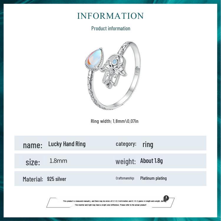 Avle Оригинальное кольцо «Счастливая рука» - Серебро S925 с платиновым покрытием, открытое кольцо, ювелирное изделие для женщин