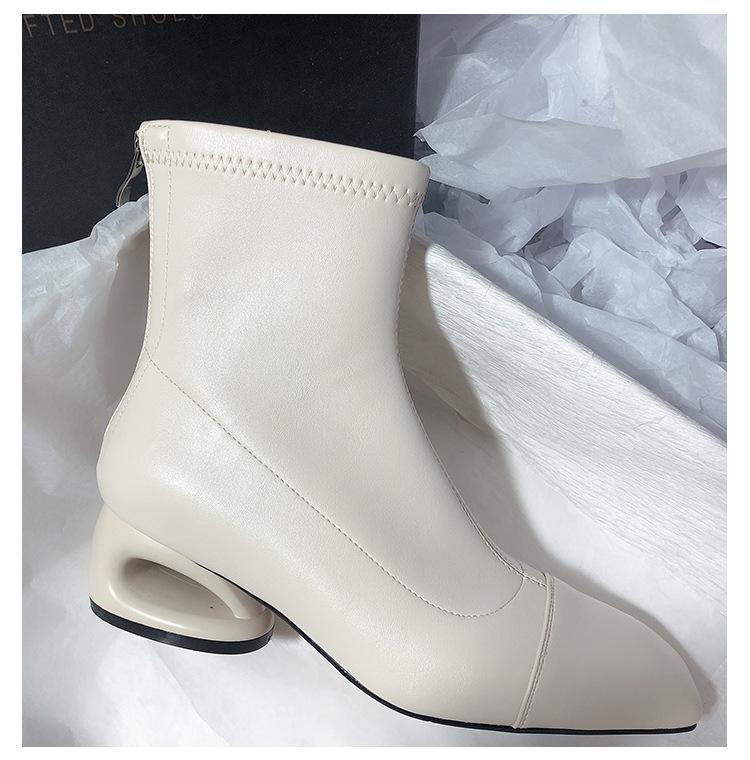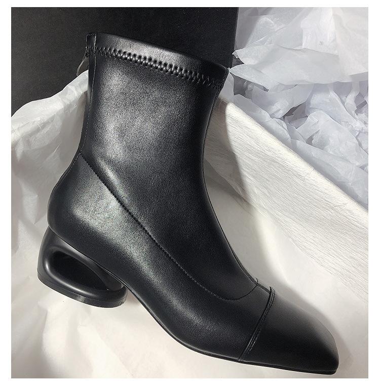 Мягкая кожа Женские осенне-зимние остроносые эластичные модные теплые ботильоны на высоком каблуке для通勤, улицы и путешествий