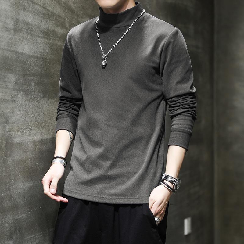 Мужская базовая футболка с полуворотником-стойкой, теплая футболка с длинным рукавом на осень и зиму, нижнее белье, двухсторонняя велюровая футболка, мужской топ — купить товар онлайн с бесплатной доставкой по всему миру!