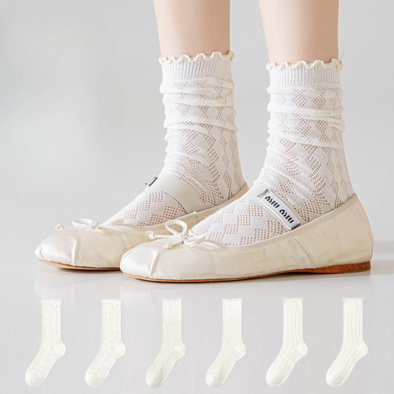 Женские летние тонкие сетчатые дышащие бесшовные кружевные гольфы средней длины из хлопка