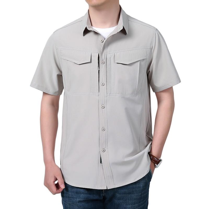 Летняя мужская рубашка с коротким рукавом, дышащая, с несколькими карманами, тактическая, для мужчин, для активного отдыха, повседневная, быстросохнущая, для походов, работы, карго-топ