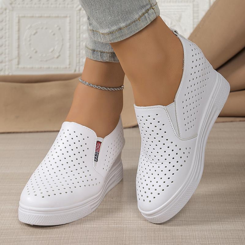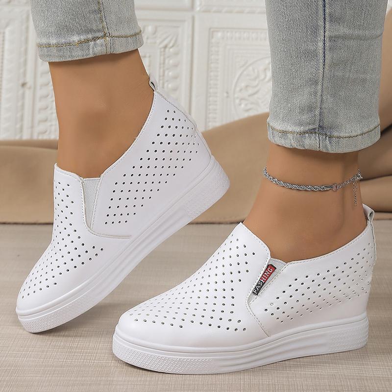 Туфли на толстой подошве со скрытым танкеткой для женщин, однотонные дышащие повседневные кроссовки, женские удобные белые кроссовки на платформе