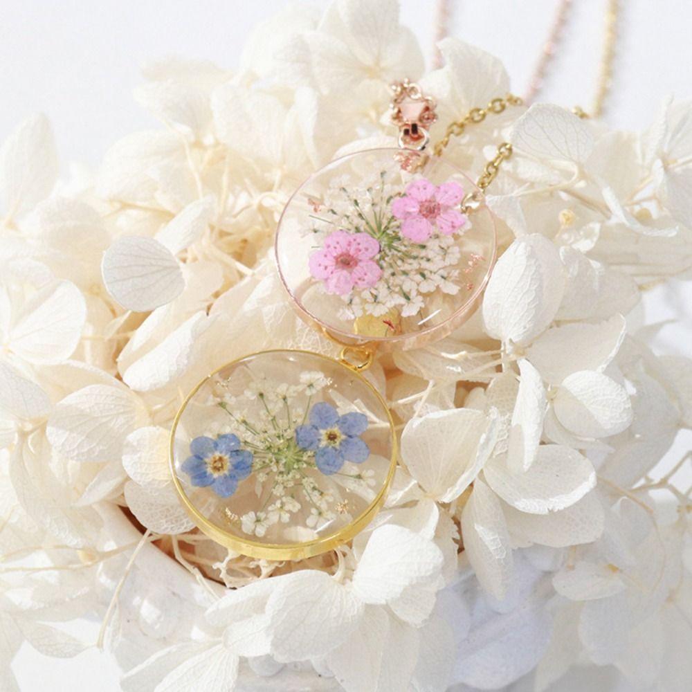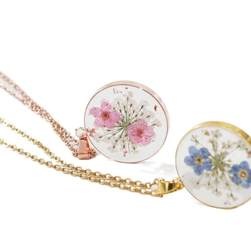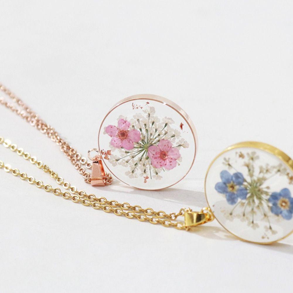 Water Drop Dried Flowers Necklace Handmade Resin Pendant Necklace Birthday Party