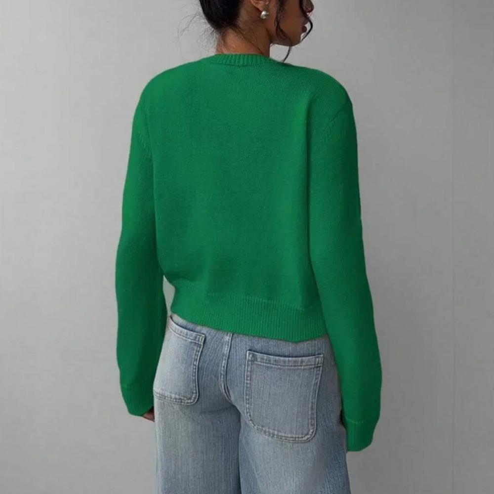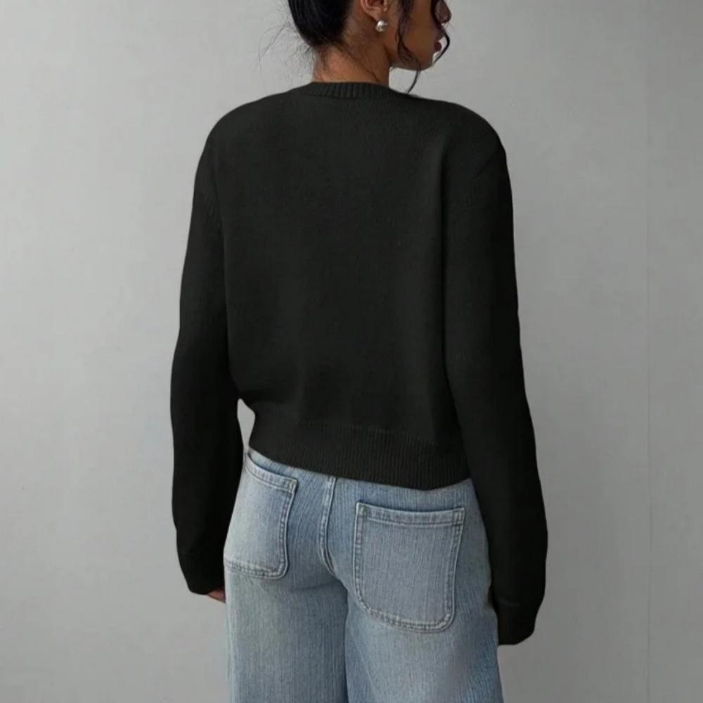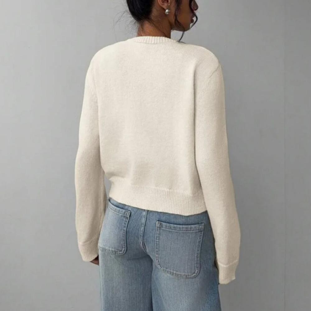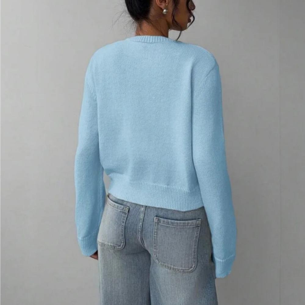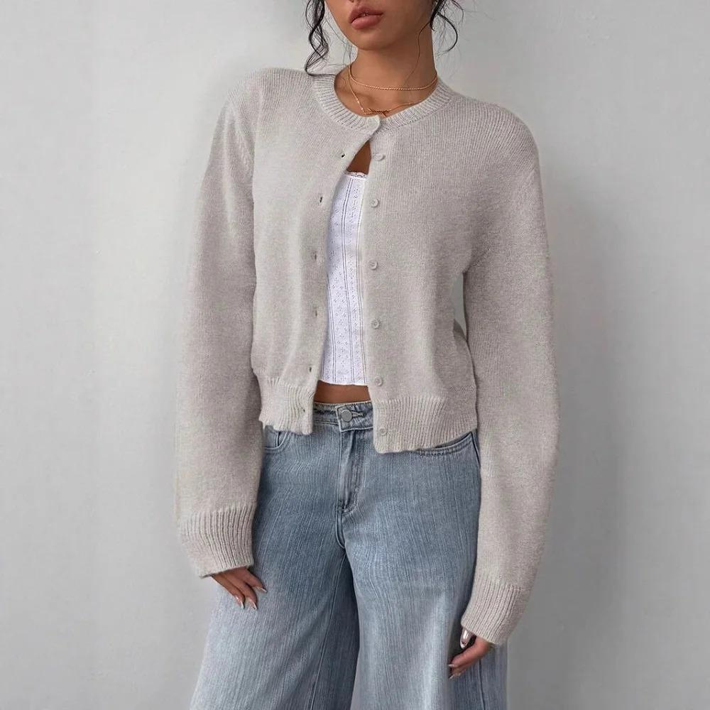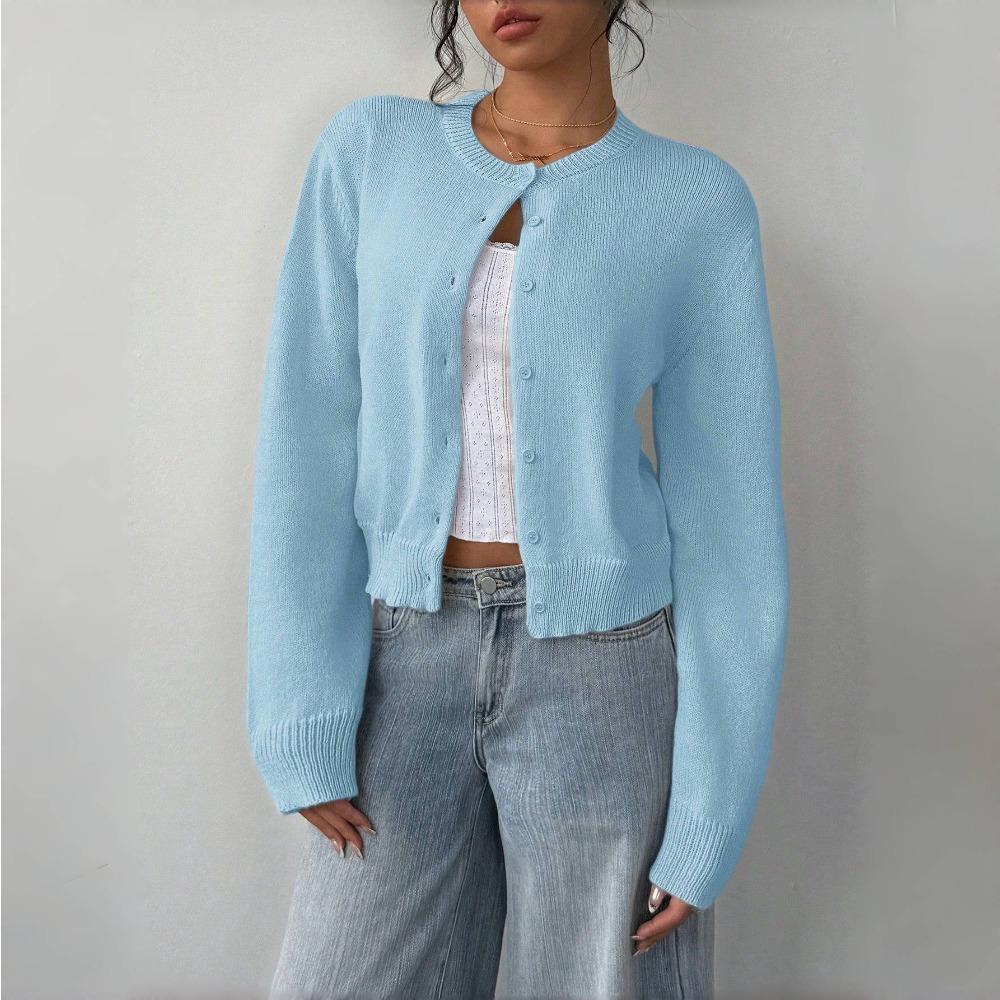Базовый Повседневный Однотонный С круглым вырезом Длинный рукав Свободный Укороченный Женский Свитер Кардиган