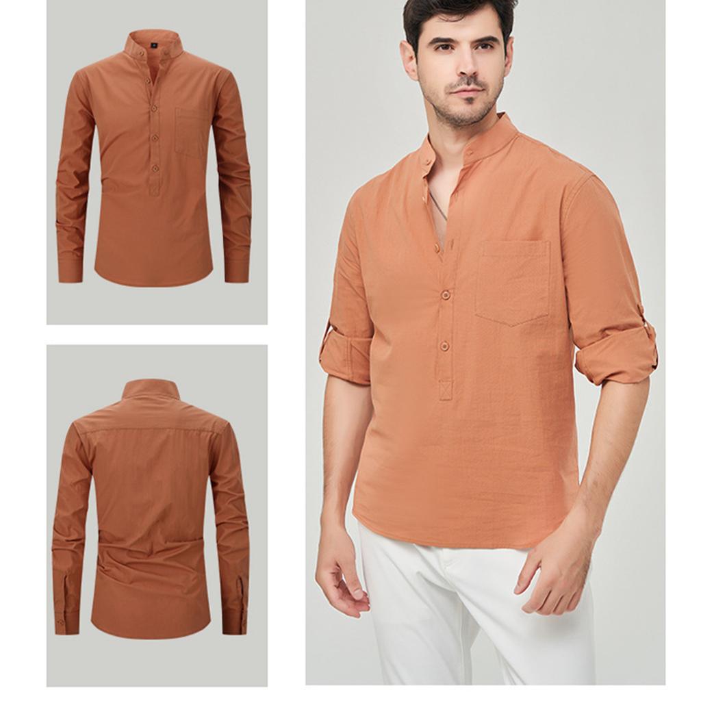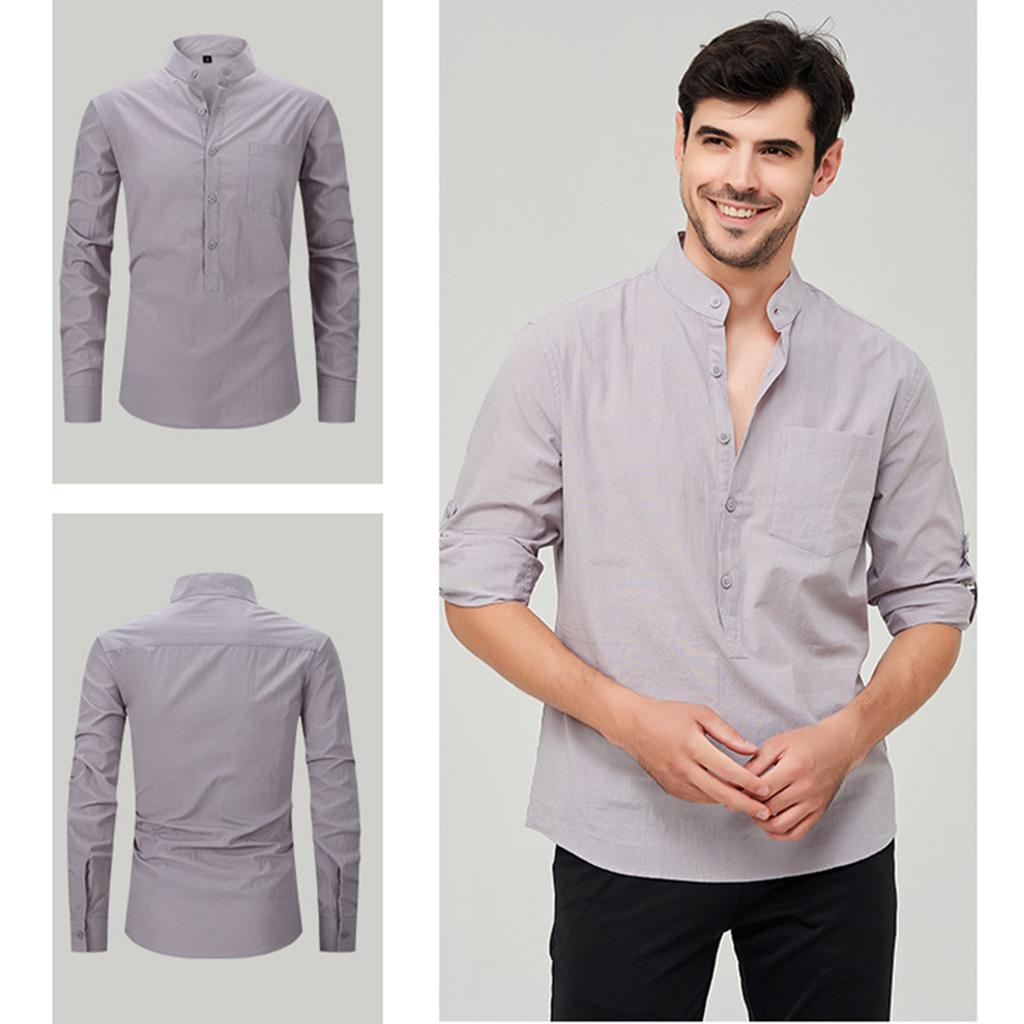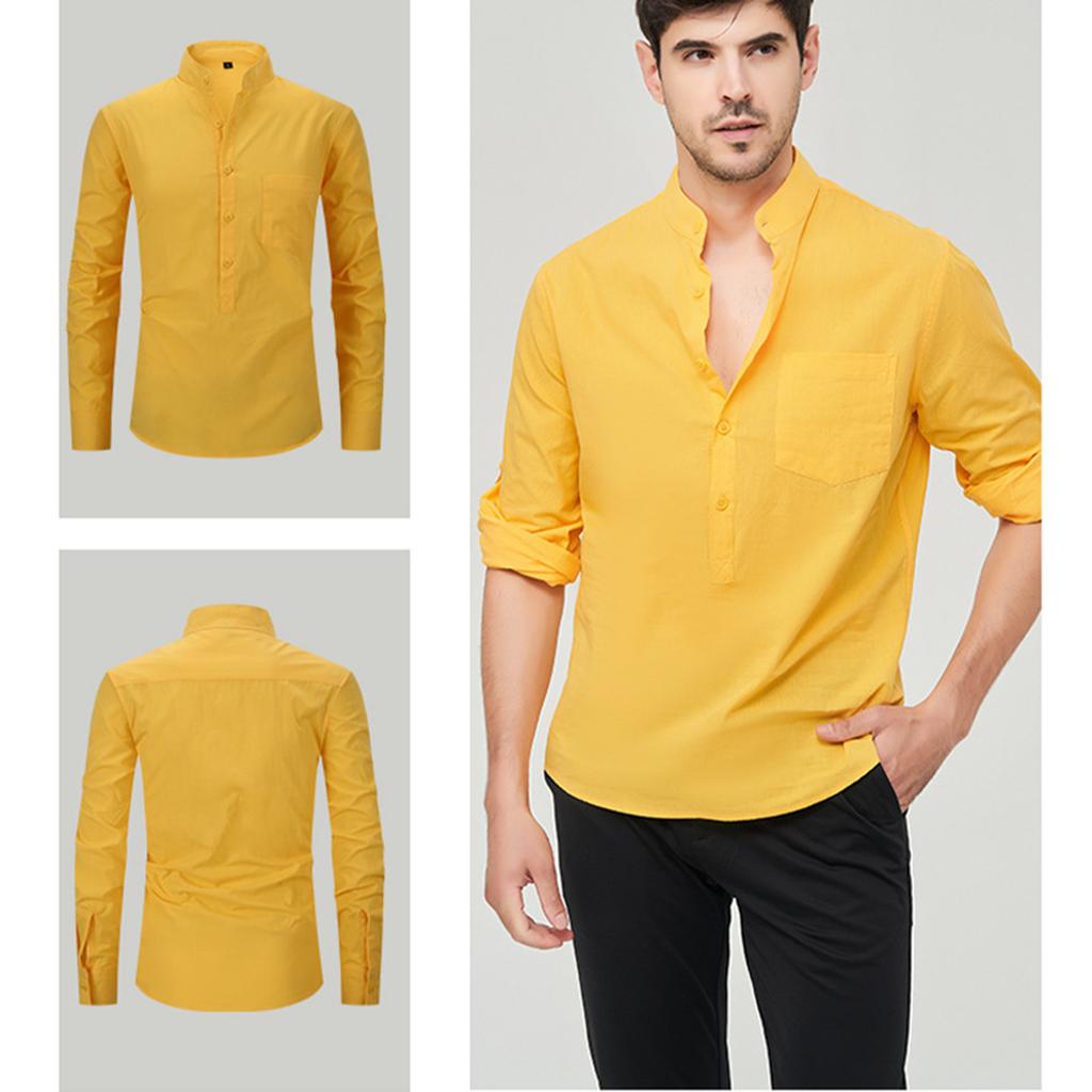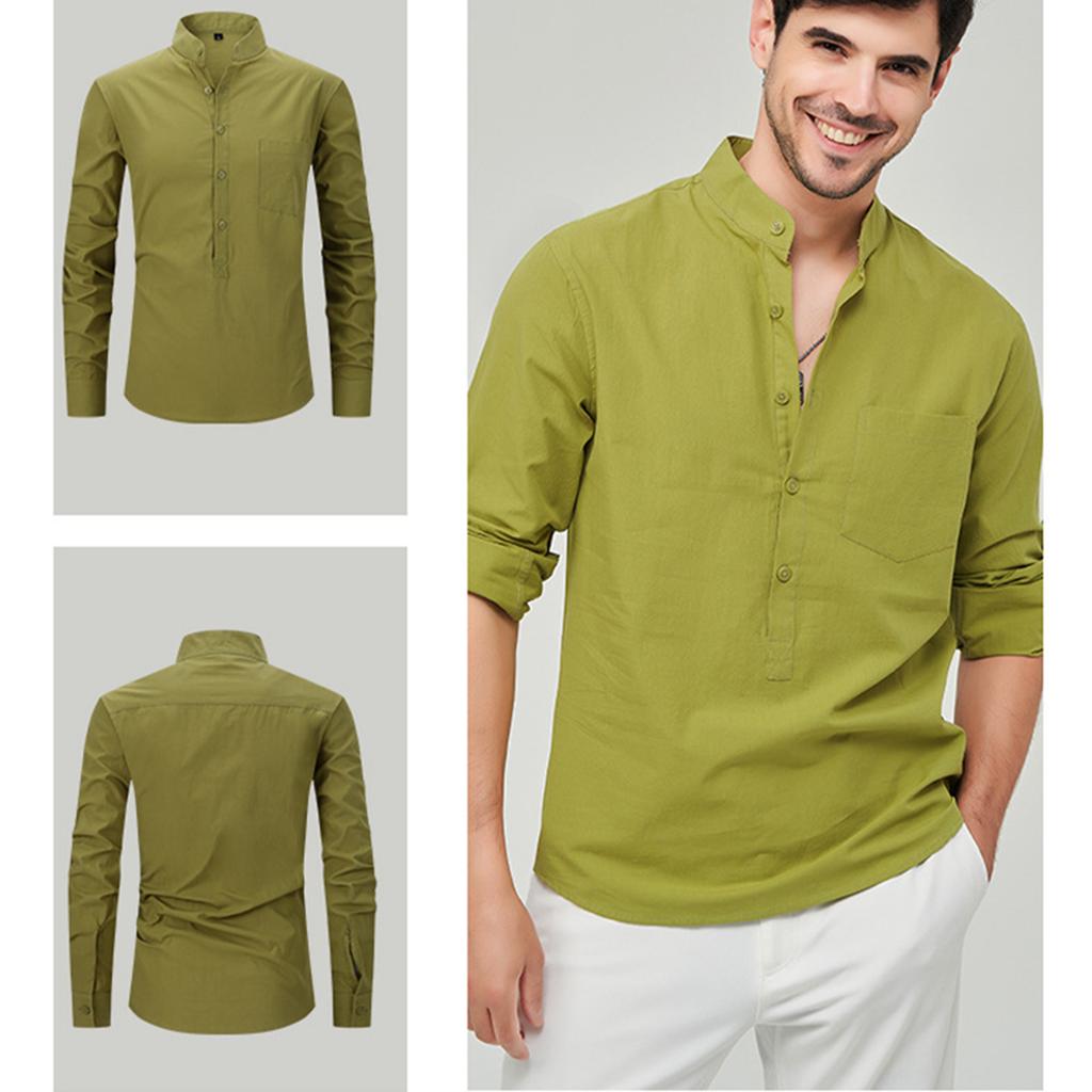 Мужская модная рубашка с воротником-стойкой, однотонная, повседневная, с длинными рукавами