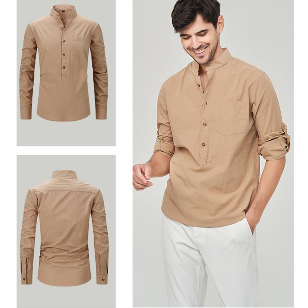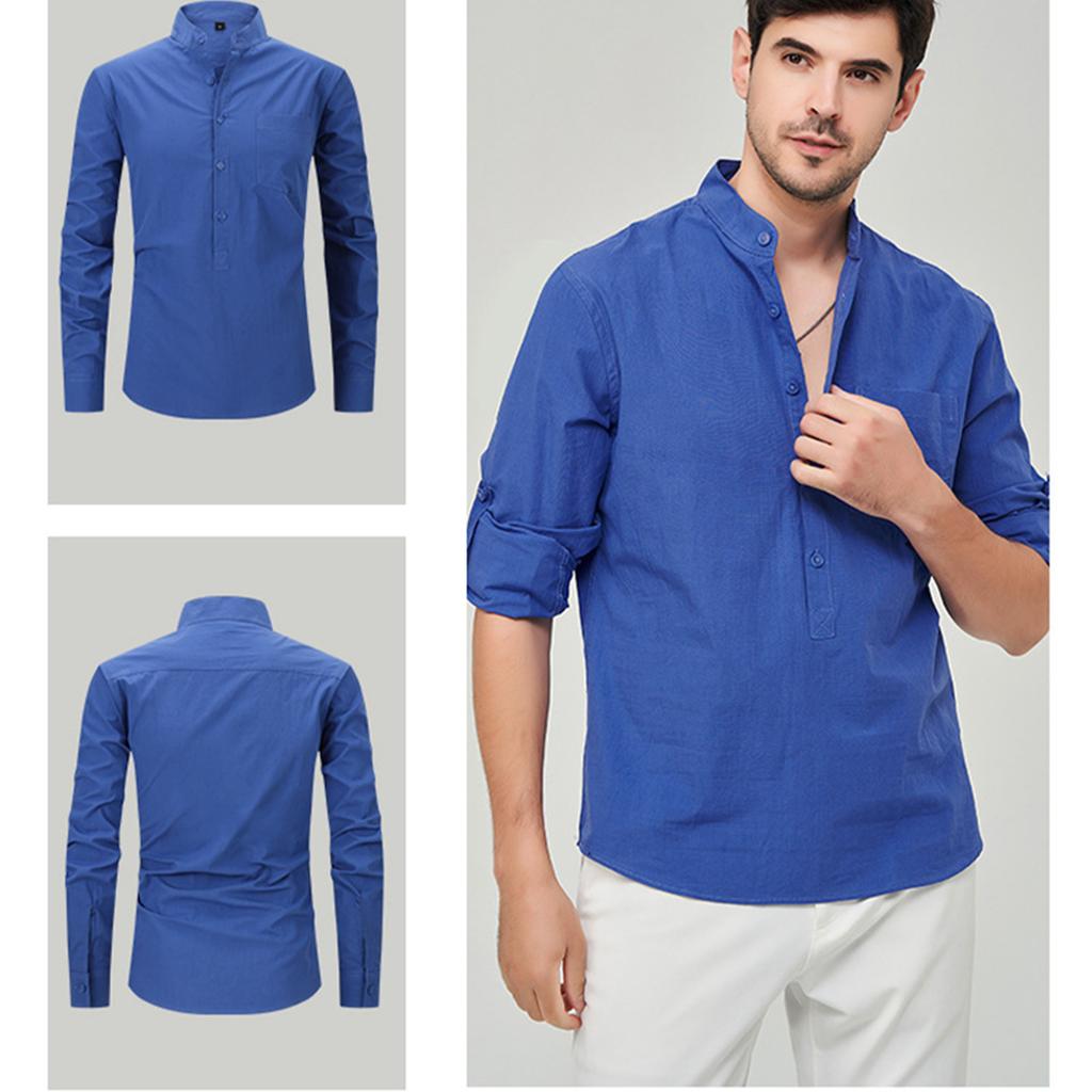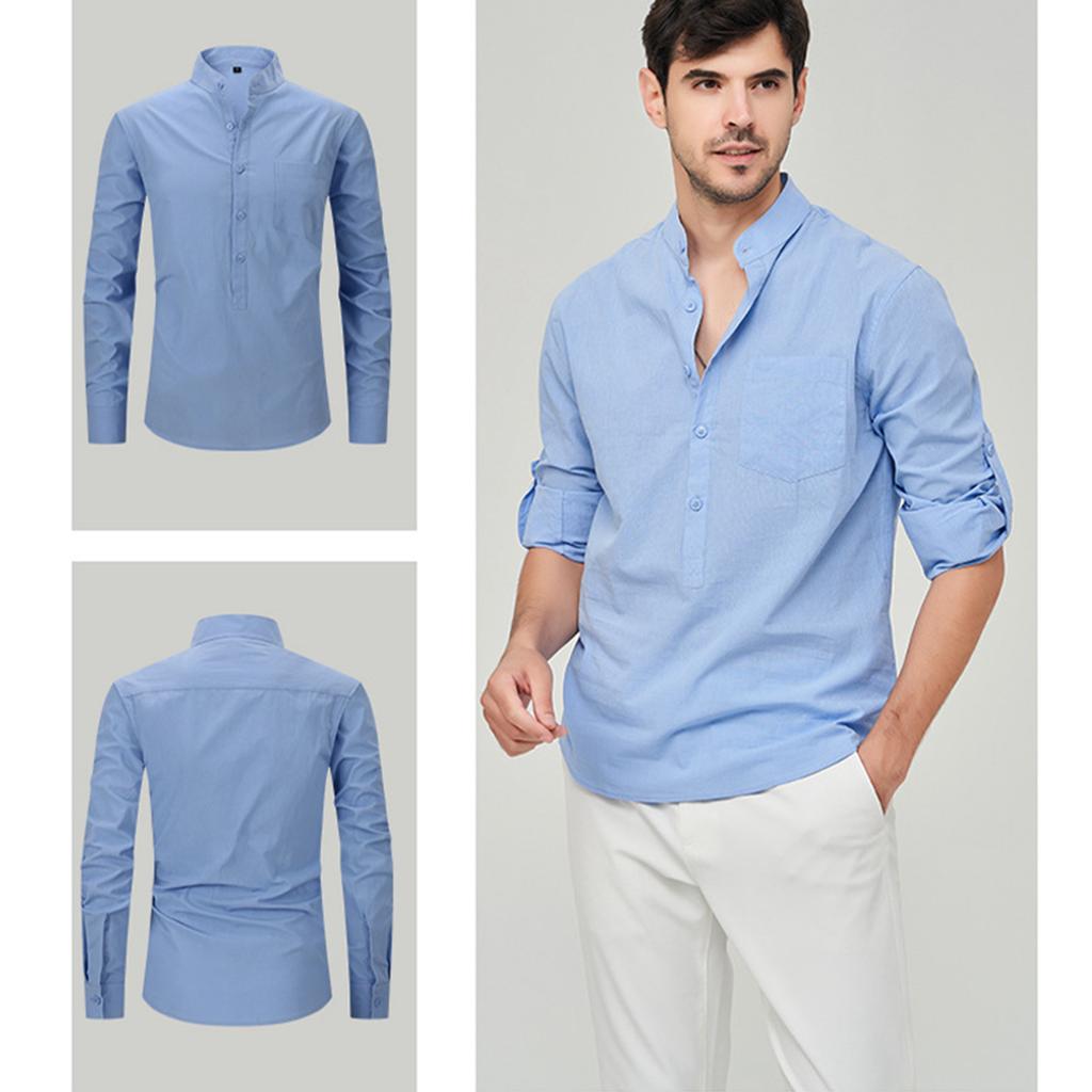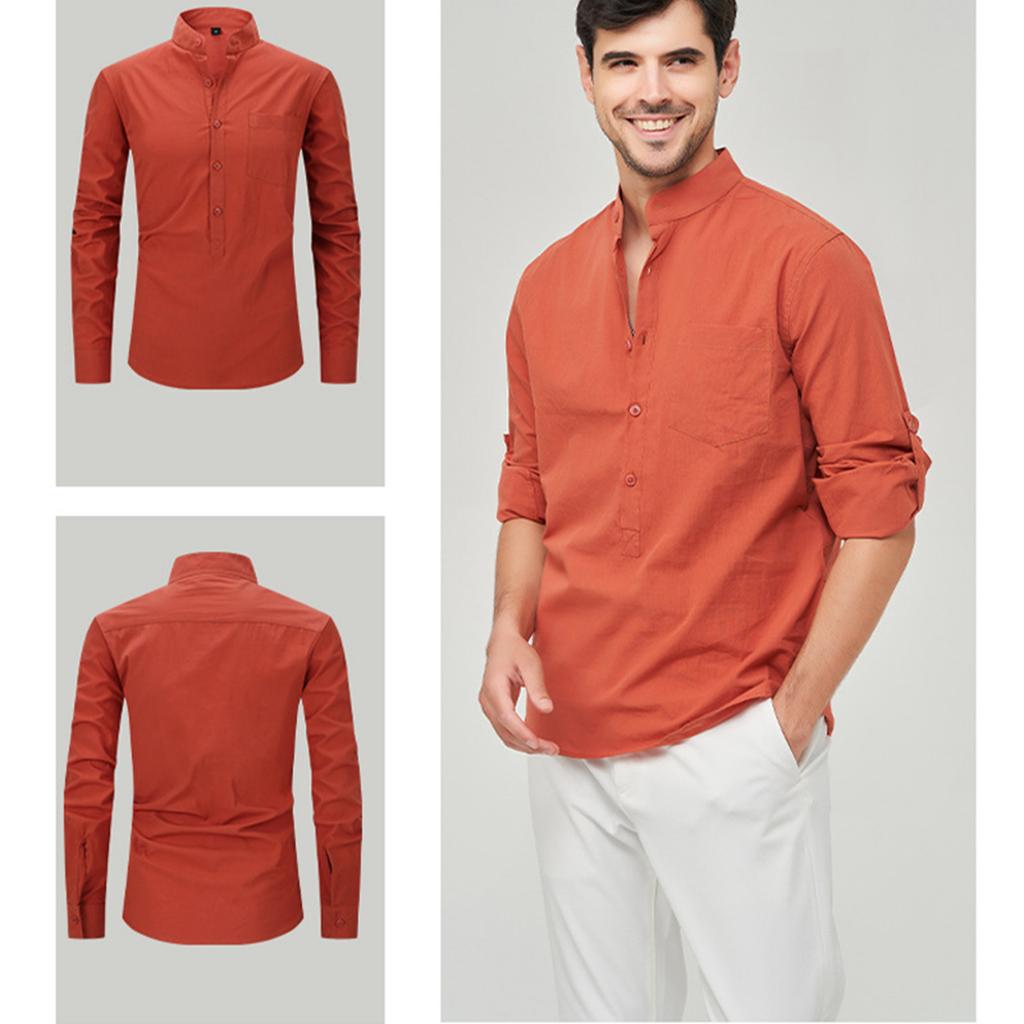 Мужская модная рубашка с воротником-стойкой, однотонная, повседневная, с длинными рукавами