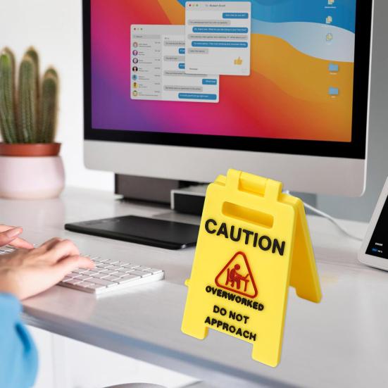 Юмористический и Привлекающий Внимание Дизайн: Яркая желтая настольная табличка "Осторожно, перевозбуждение" добавляет игривый штрих любому рабочему пространству, гарантируя, что сообщение выделяется и вызывает улыбки у коллег, друзей и семьи.