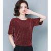 Мама носит яркую шелковую футболку с коротким рукавом Женщины с большим размером Свободная Универсальная Модная Темпераментная Базовая Футболка