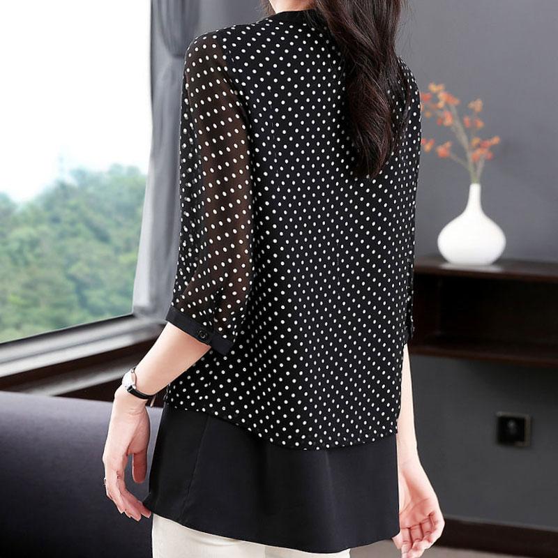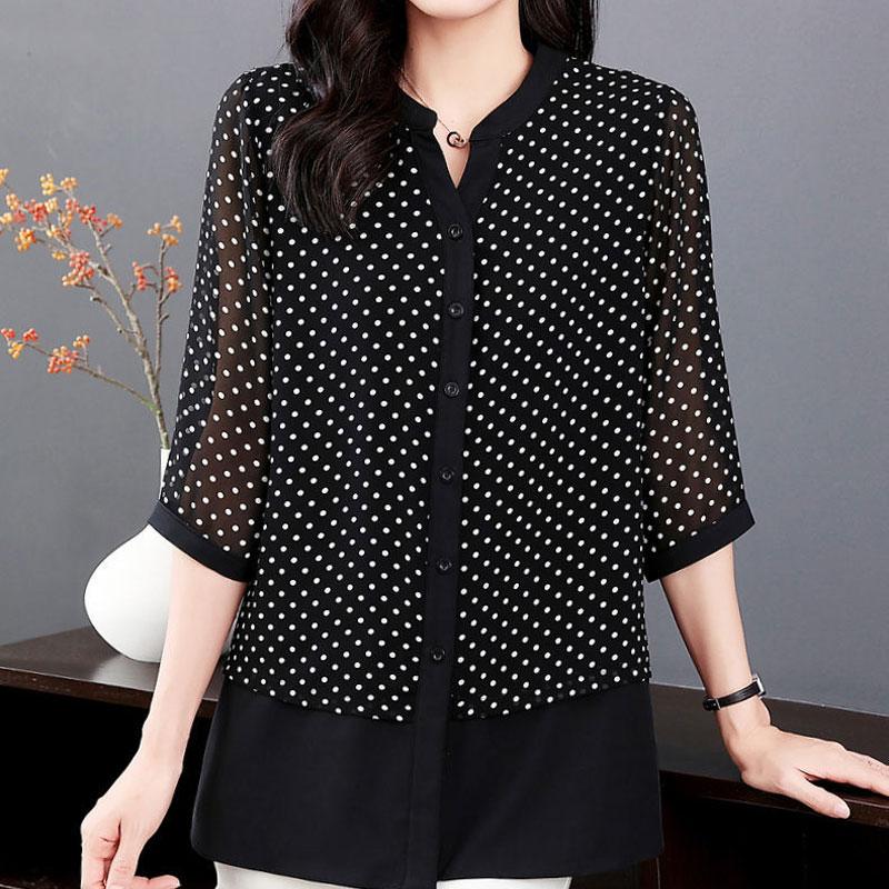 Блузка с принтом в горошек весна-лето женская одежда повседневная однобортная рубашка для поездок на работу с круглым вырезом и рукавом 3/4 универсальная свободная рубашка