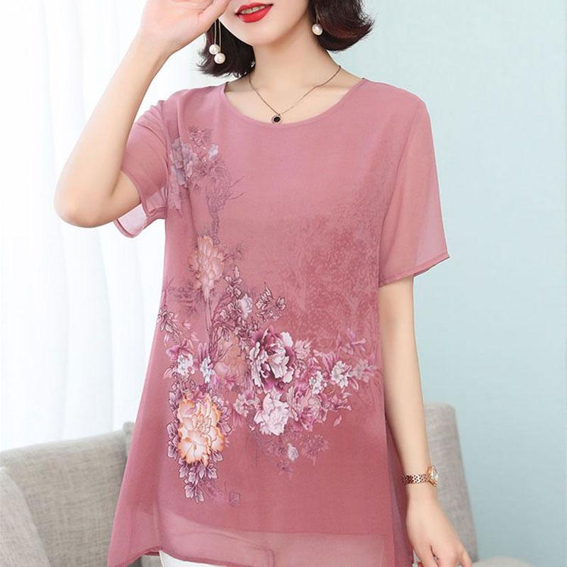Летняя шифоновая блузка с цветочным принтом, с коротким рукавом, женская одежда, свободная, стильная, асимметричная, для работы, с круглым вырезом, комбинированная, миди — купить товар онлайн с бесплатной доставкой по всему миру!
