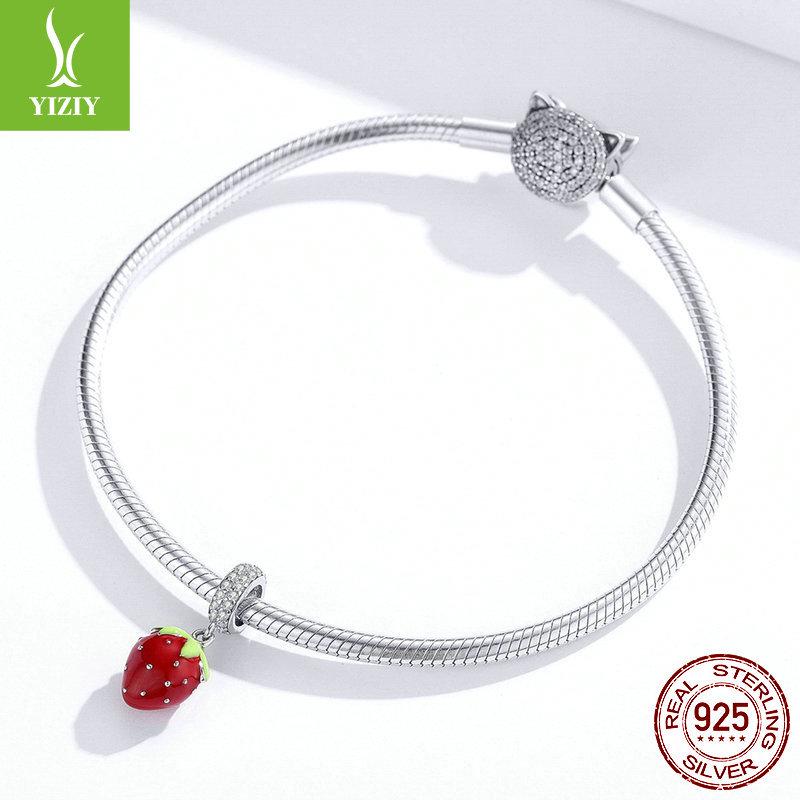 Подвеска Ziyun Sweetheart Клубника из серебра S925 - Милые бусины ручной работы для DIY-украшений SCC1537
