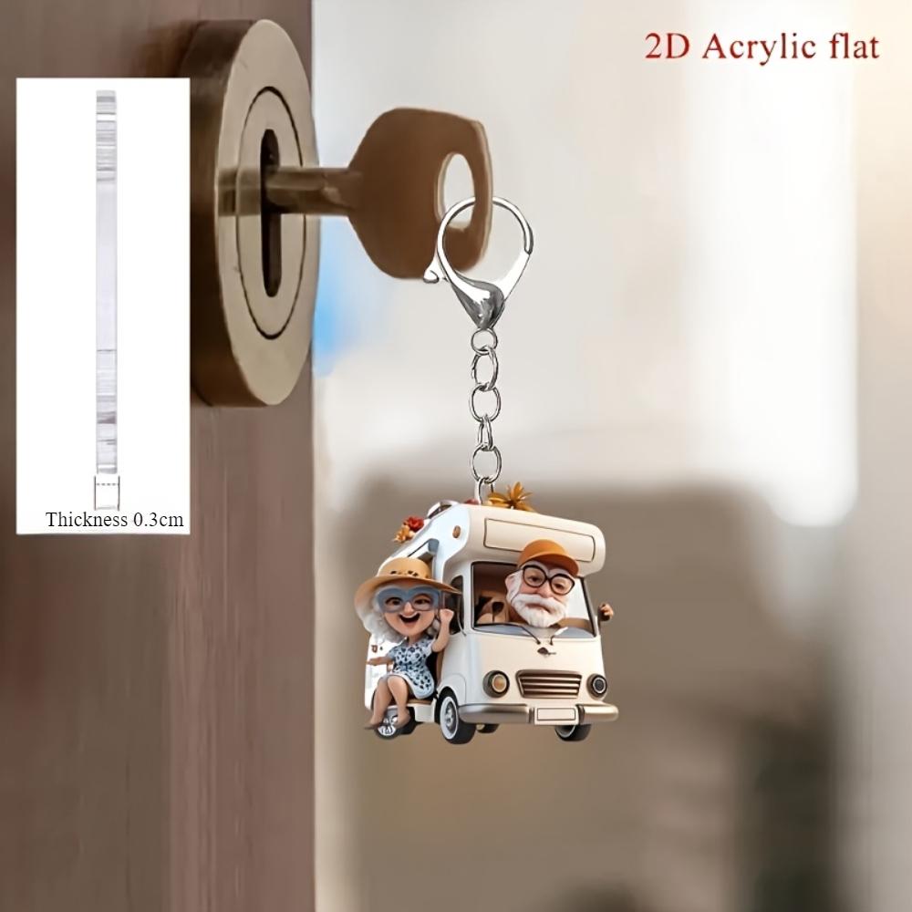 2D акриловый плоский забавный акриловый брелок для путешествий на автодоме для бабушек и дедушек, подходит для украшения рюкзака и ключей от машины, украшение для праздничной вечеринки