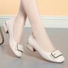 Весенние новые женские модные туфли на квадратном каблуке для вечеринок, черные офисные туфли из мягкой искусственной кожи, удобные балетки с металлической пряжкой