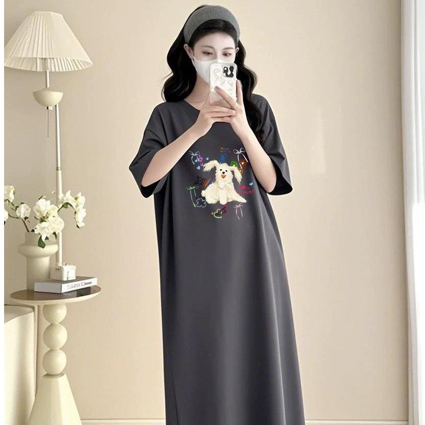 Непринужденное длинное платье-футболка для женщин на лето, корейский стиль, свободное и стройнящее, с коротким рукавом, свободное повседневное платье с мультяшным принтом — купить товар онлайн с бесплатной доставкой по всему миру!