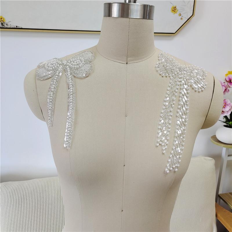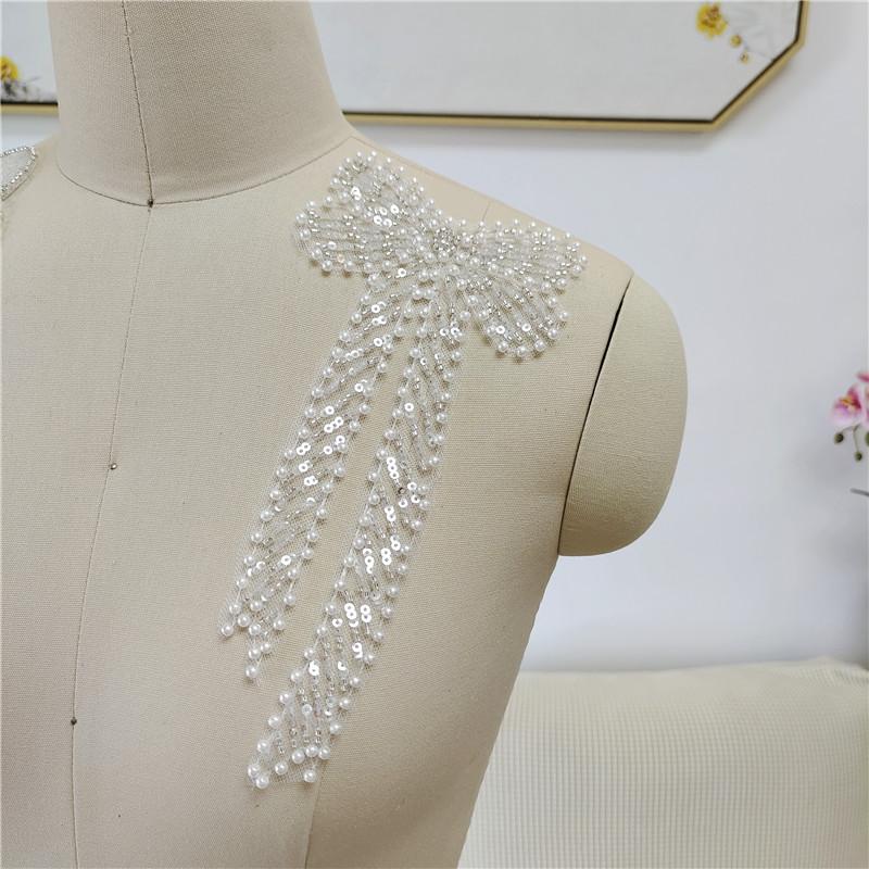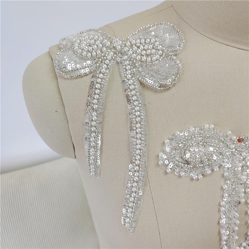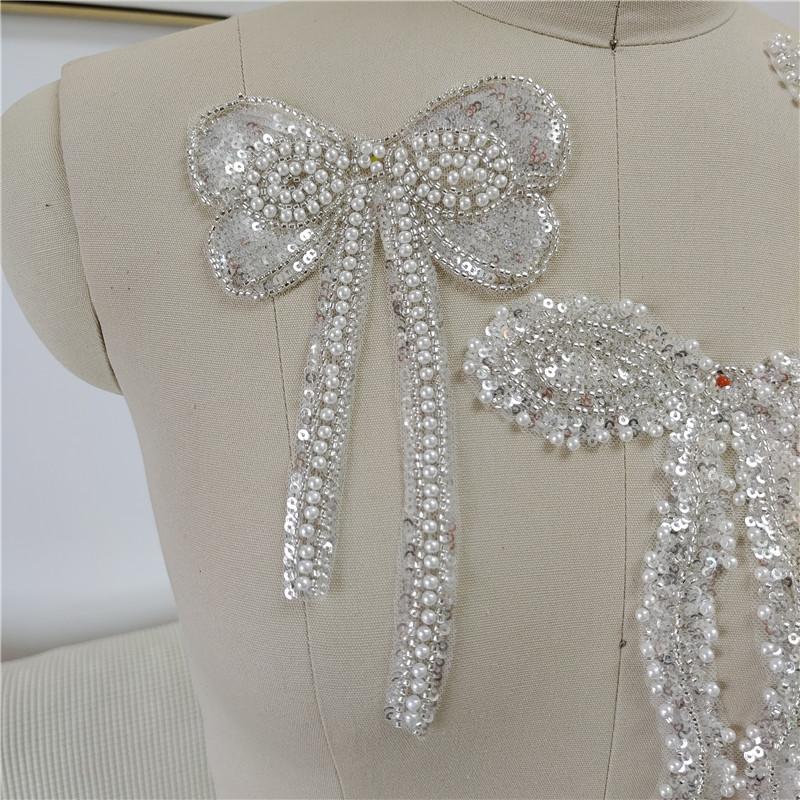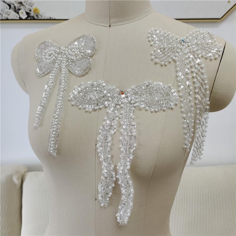 1 шт. Аппликации из бисера, пайеток, кружева-сетки с бантом, свадебные нашивки для одежды, аксессуары