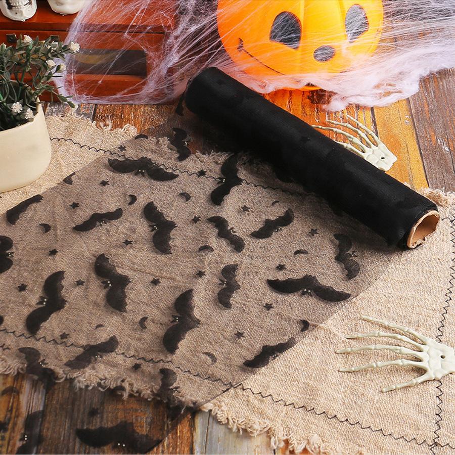 Жуткая магия вуали: Хэллоуинские рулоны тюля с летучими мышами и паутиной – Наполните ваш стол готическими салфетками и паутинными дорожками.