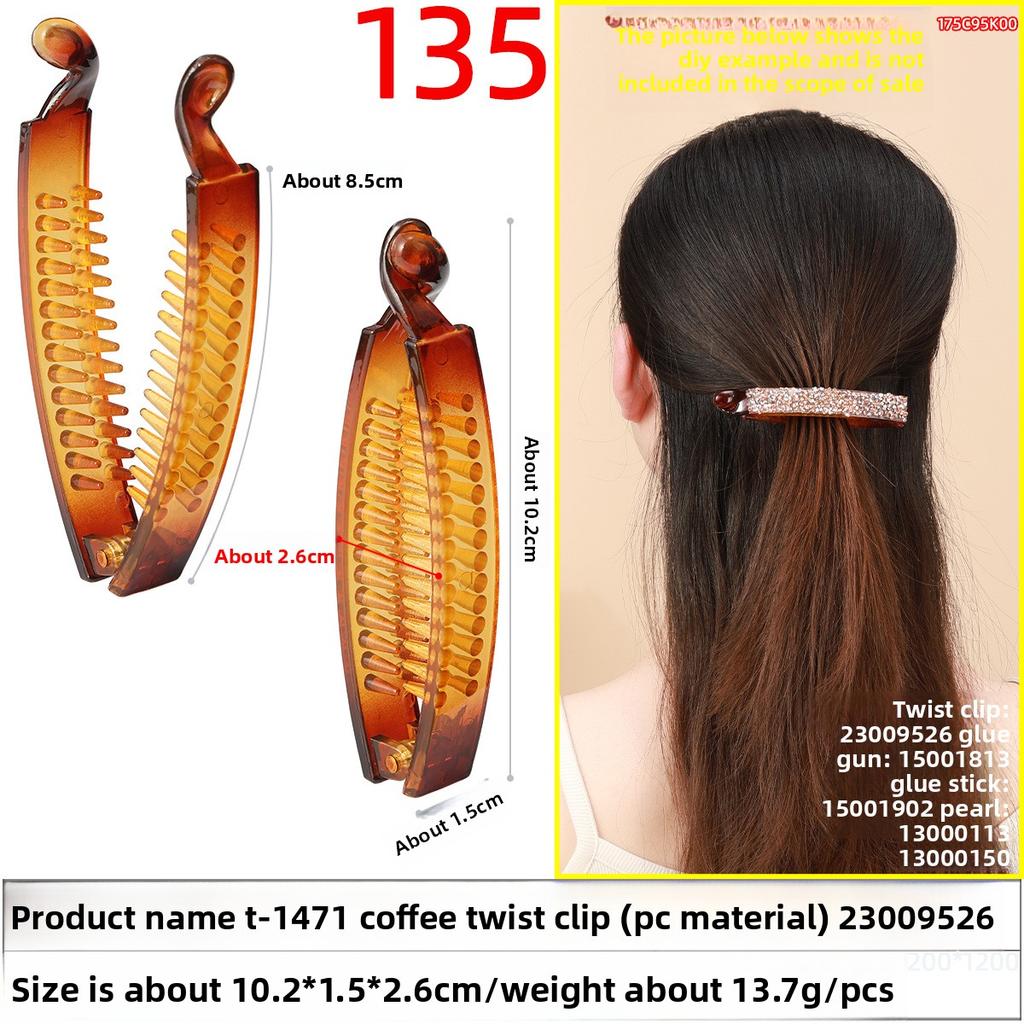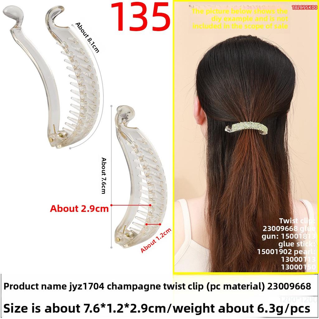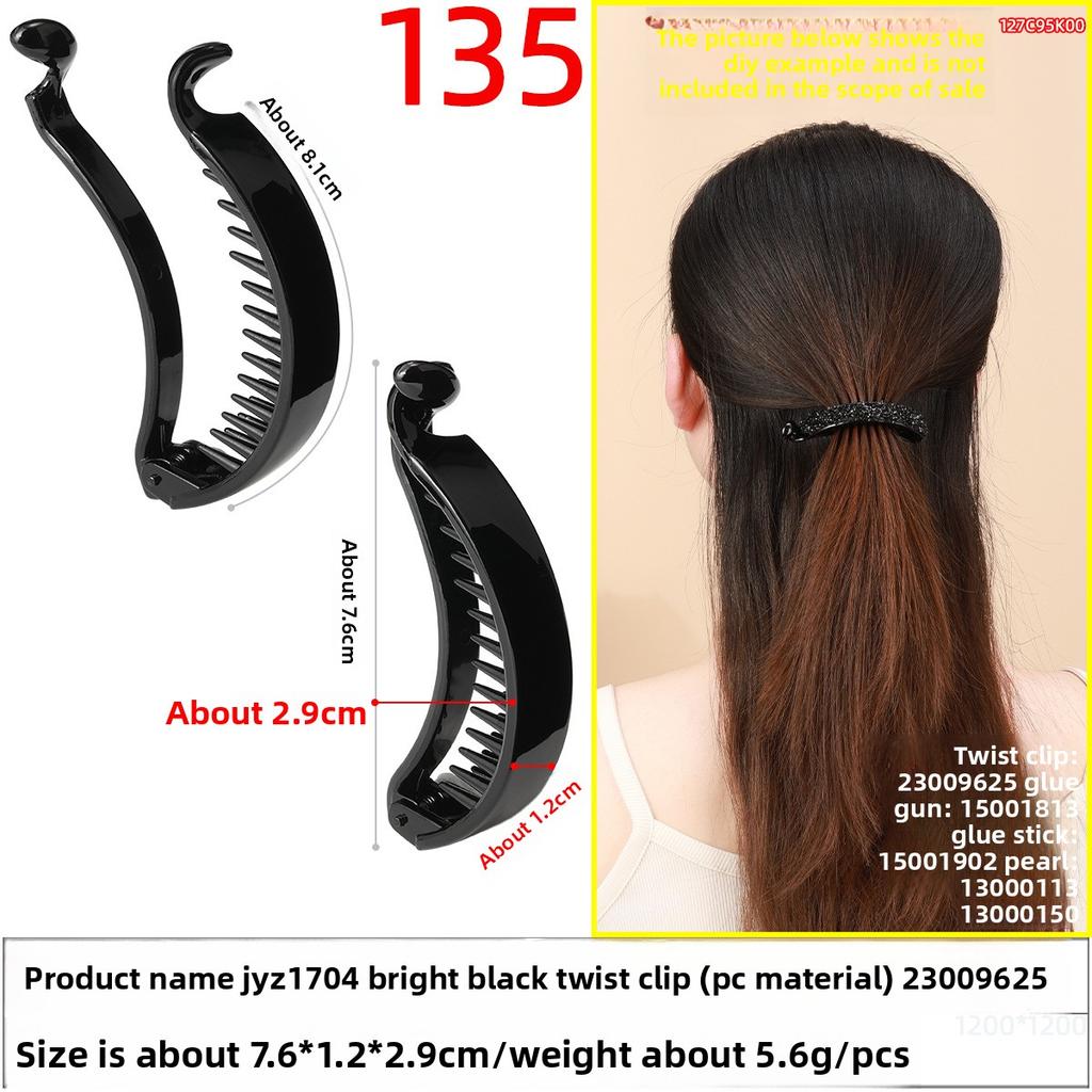 Заколка имеет сладкий твист-зажим на затылке, лунообразный зажим-банан и вертикальный зажим для полухвоста.