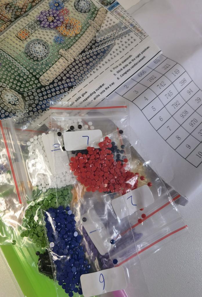 Набор алмазной вышивки Размер 15 на 15 см Брала для детей (10 лет) Стразы круглые Нумерация не сложная Цвета яркие, картинка немного с блёстками. Красивая и подробная. Есть рамочка, подходящая по размеру. Стилус на 1 стразик, квадрат клея и лоток. Дети заняты, качество отличное!