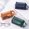 Zipper Transparent Cosmetic Bag Retro Color Toiletry Storage Bag Casual Mesh Makeup Bag Travel