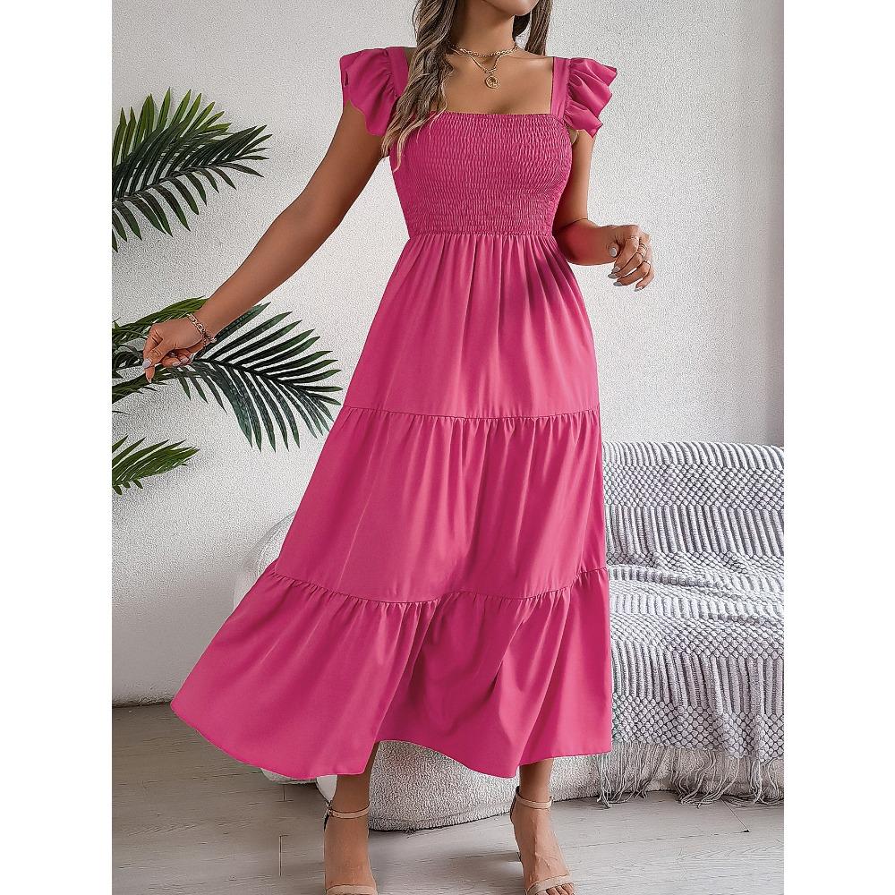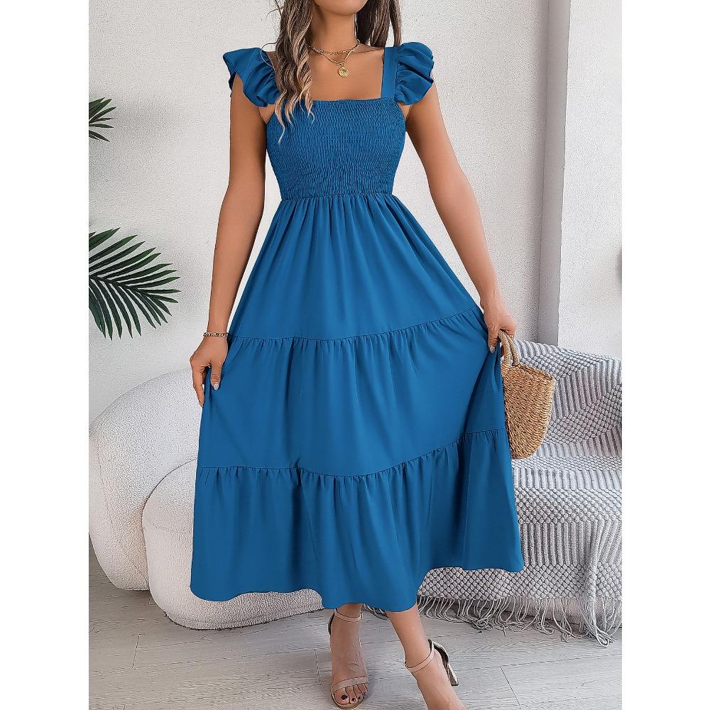 Летние однотонные платья с квадратным вырезом, деревянными ушками по бокам талии, А-силуэта, длинные, женские, свободные, повседневные