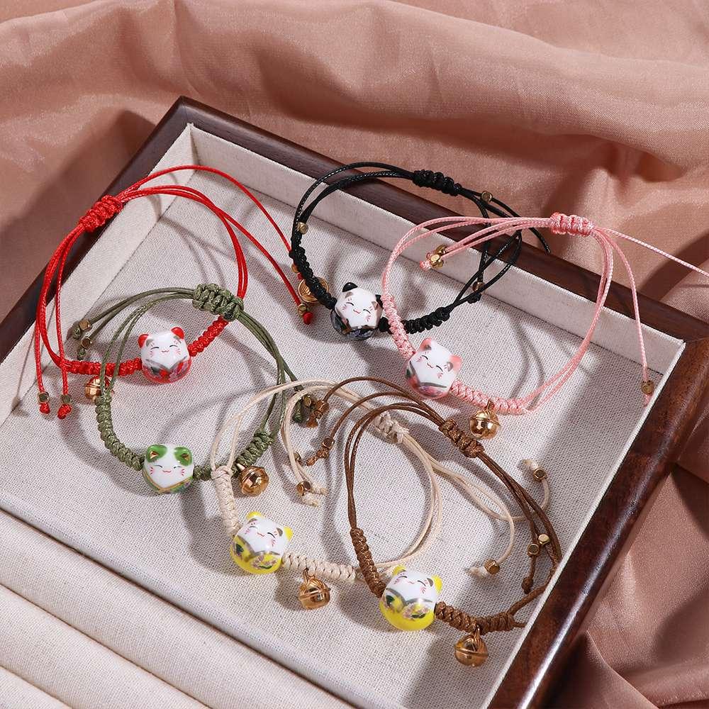 Милый браслет для влюбленных с колокольчиком Манеки Неко Женское кольцо на руку Красная плетеная веревка Украшения в китайском стиле