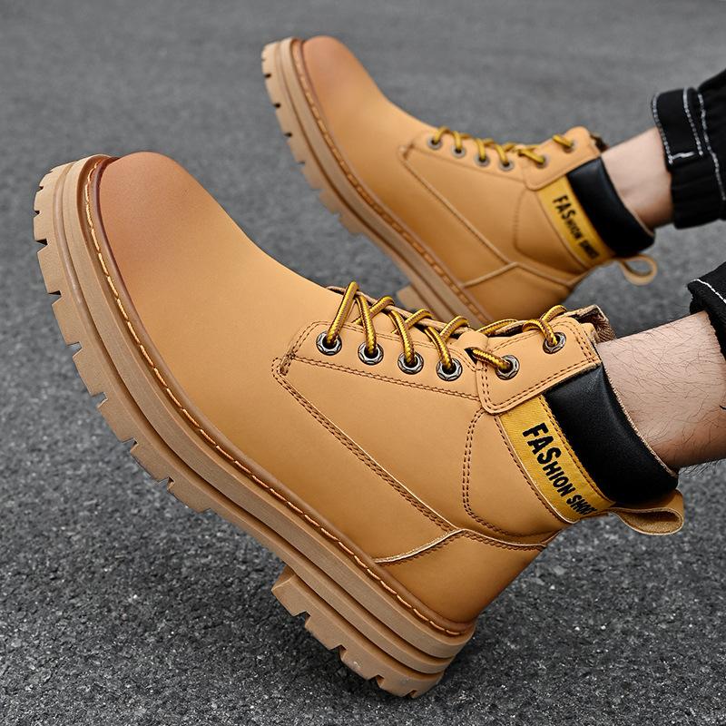 Осень и зима новая обувь мужская рабочая с высоким берцем большого размера из натуральной кожи ревеня ботинки Мартина с хлопком для сохранения тепла
