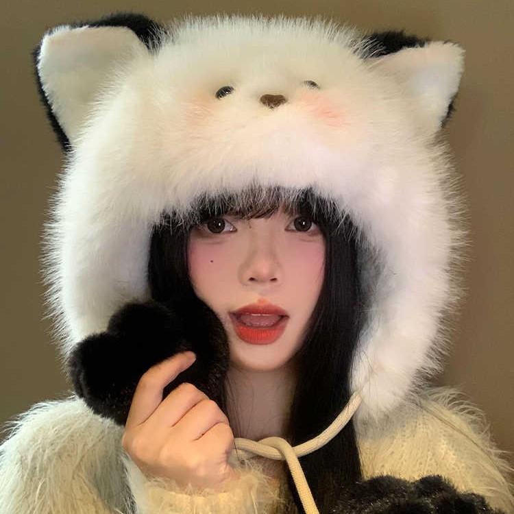 Милая шапка с лисьими ушками цвета румянца, женская плюшевая осенне-зимняя теплая утолщенная ветрозащитная шапка-ушанка для верховой езды