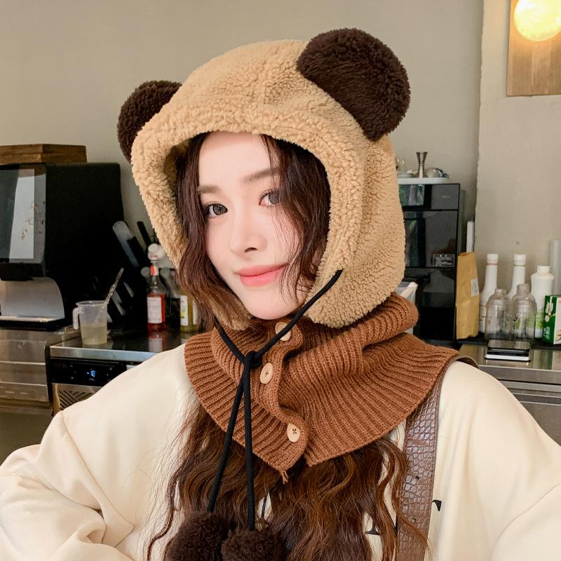 Осенне-зимняя шапка женская милая шапка шарф интегрированный зимняя теплая утолщенная бархатная шапка с ушками