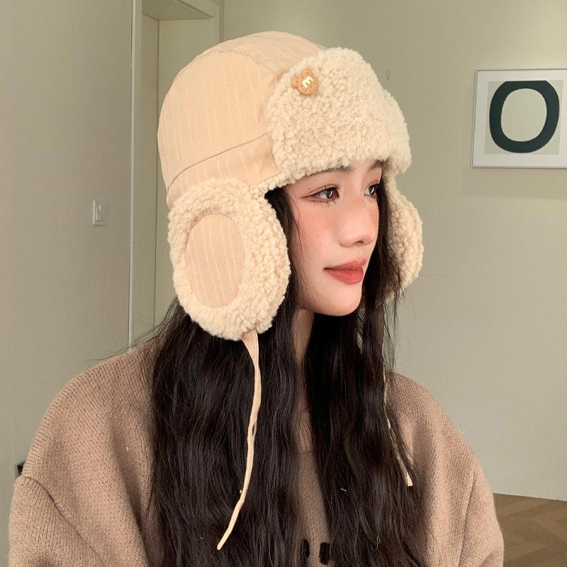 Осенне-зимняя женская шапка M медведь из овечьей шерсти, зимняя теплая, для защиты от холода на улице, шапка-ушанка, толстая