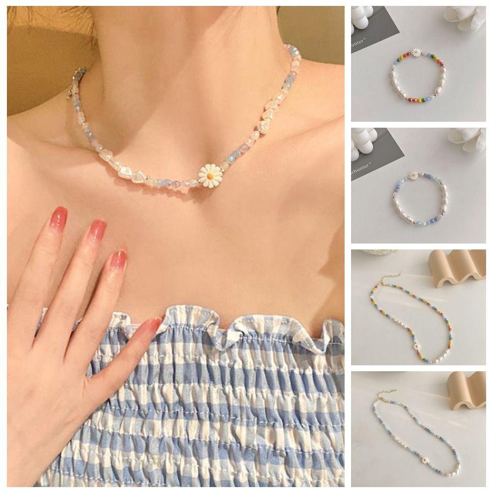 Bead Rice Bead Necklace Korean Style Flower Pearls Clavicle Chain Cute Daisy Bracelet Girl