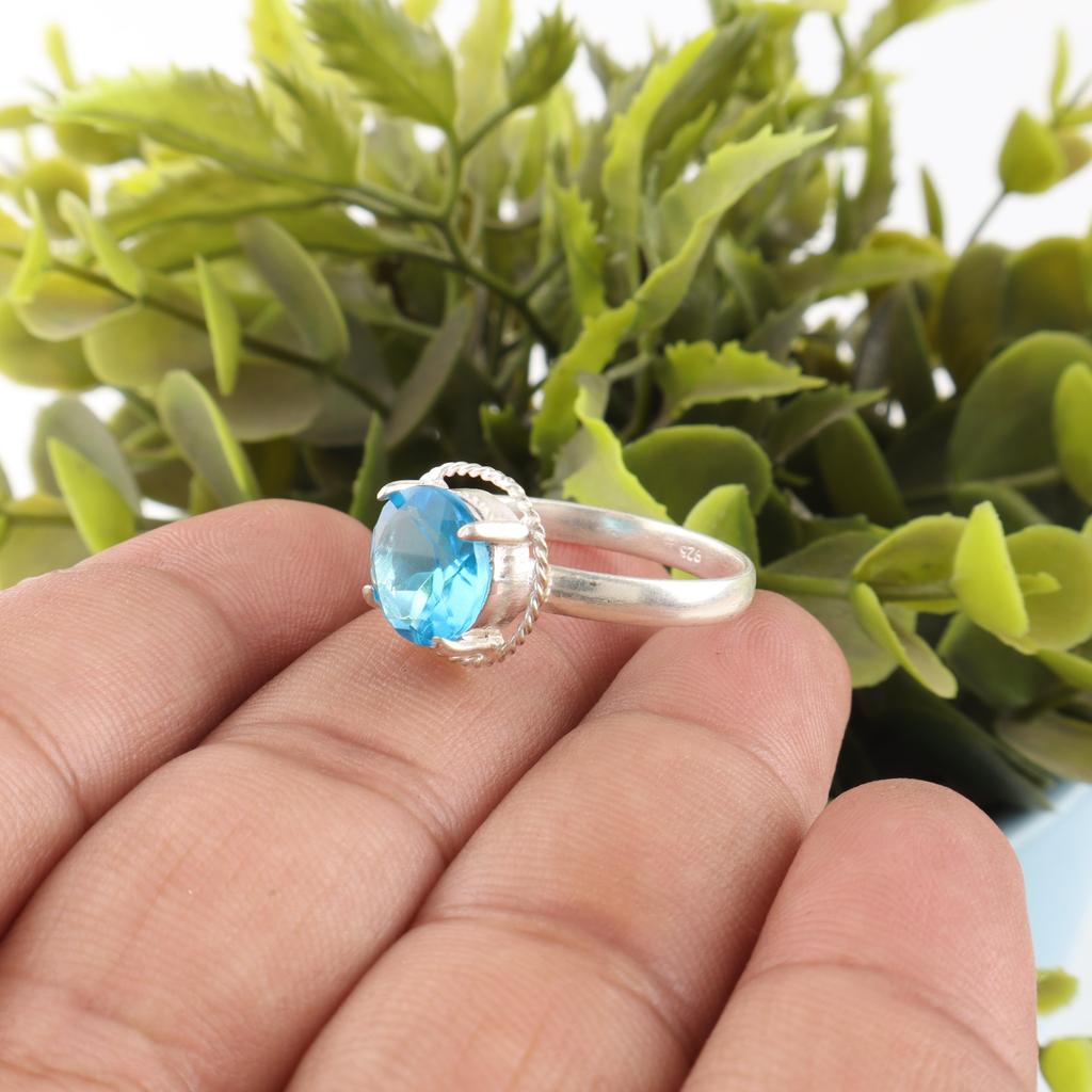 Ювелирные изделия из драгоценного камня голубой топаз, кольцо из стерлингового серебра 925 пробы, красивое серебряное кольцо ручной работы для подарка, кольцо с топазом в стиле бохо для женщин