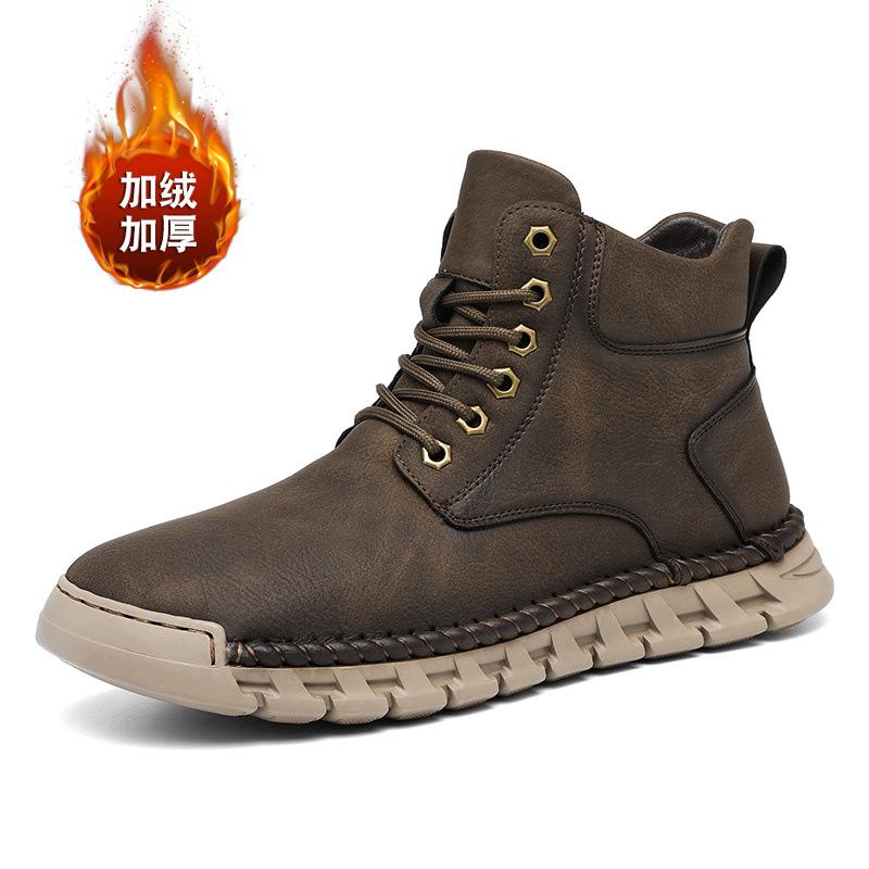 Осенне-зимние высокие бархатные теплые износостойкие нескользящие ботинки на толстой подошве, мужские новые уличные кожаные ботинки с прошивкой, мужская обувь