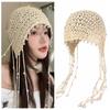 Женская вязаная крючком шапка, однотонная вязаная шапка в этническом стиле с кисточками, на шнуровке, ручная работа