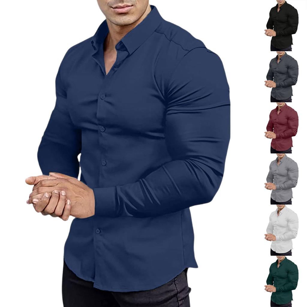 Мужская весенняя рубашка с длинным рукавом однотонной расцветки, дизайн в повседневном и зрелом стиле, универсальная рубашка для ношения под костюм — купить товар онлайн с бесплатной доставкой по всему миру!