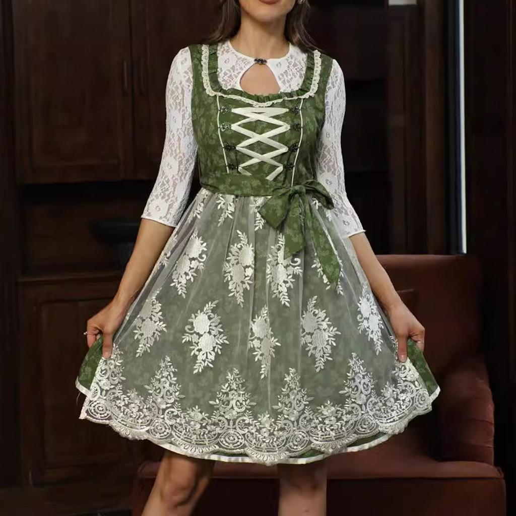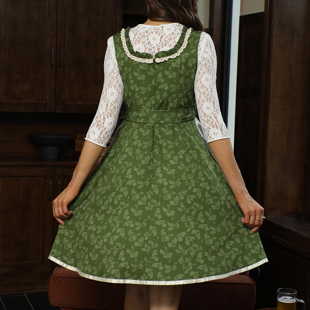 Костюм для пивного фестиваля Баварский женский костюм для выступлений Платье с квадратным вырезом и цветочным принтом(Без кружевной подкладки)