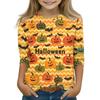 Детские топы с рукавом 3/4, повседневная футболка с принтом на Хэллоуин, пуловер-блузка с круглым вырезом