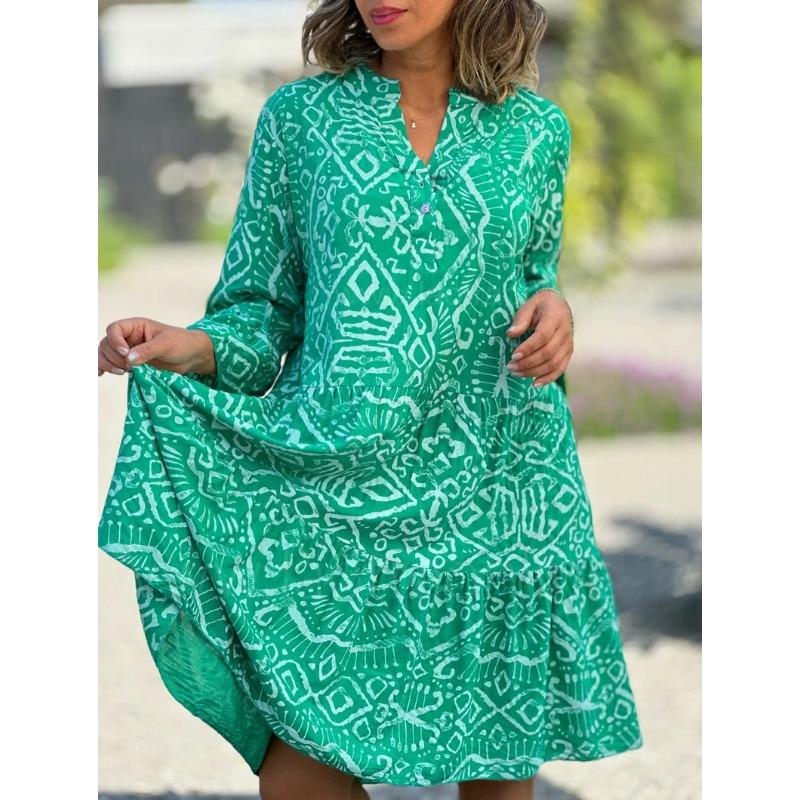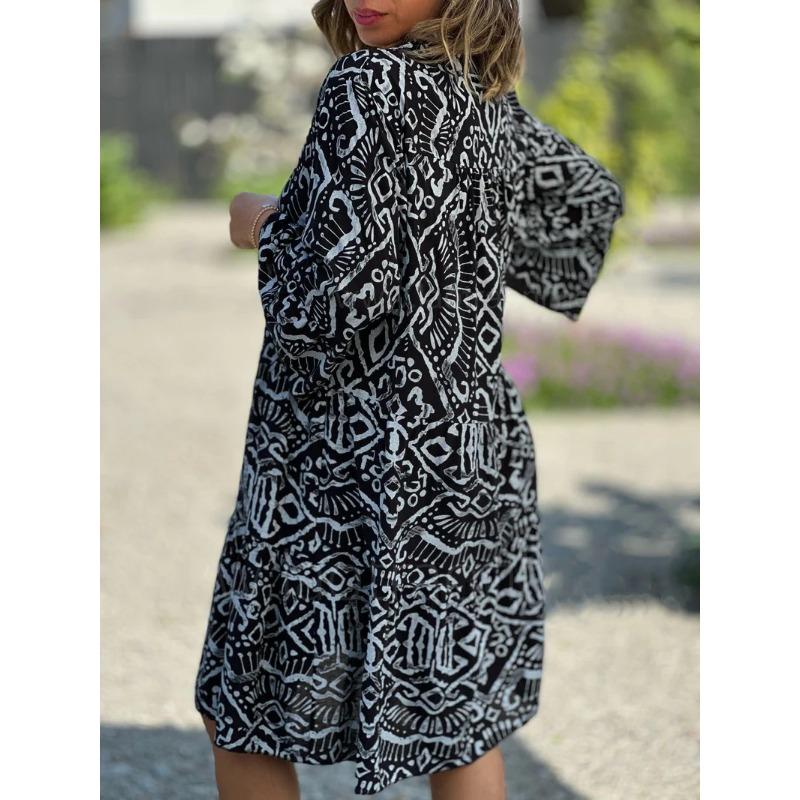 Женское миди-платье с V-образным вырезом и рукавами 3/4, свободное платье с геометрическим принтом, пляжные платья