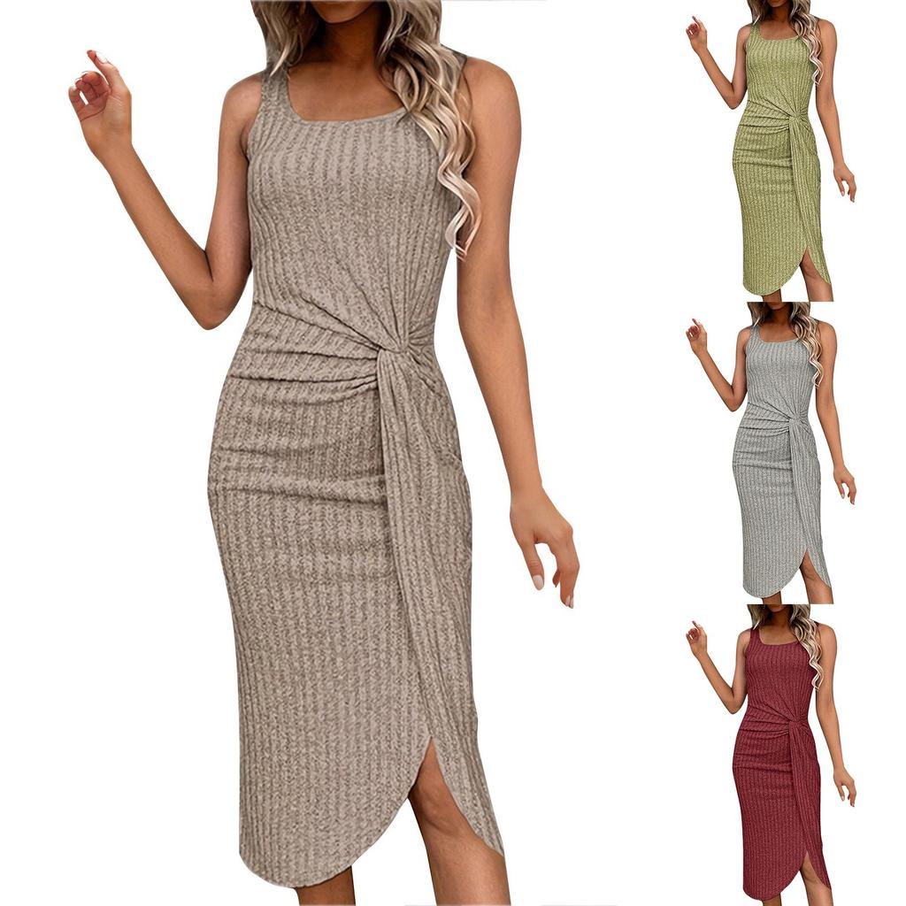 Женское модное летнее однотонное повседневное платье средней длины с асимметричным подолом