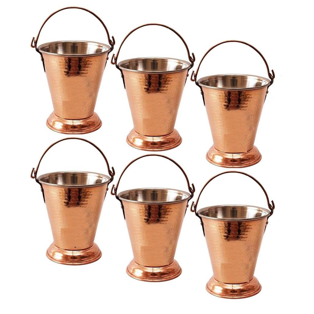 Ведро из стали с чеканным медным дизайном, сервировочная посуда и столовая посуда для дома, отеля и ресторанов, объем - 400 мл, набор из 6 штук