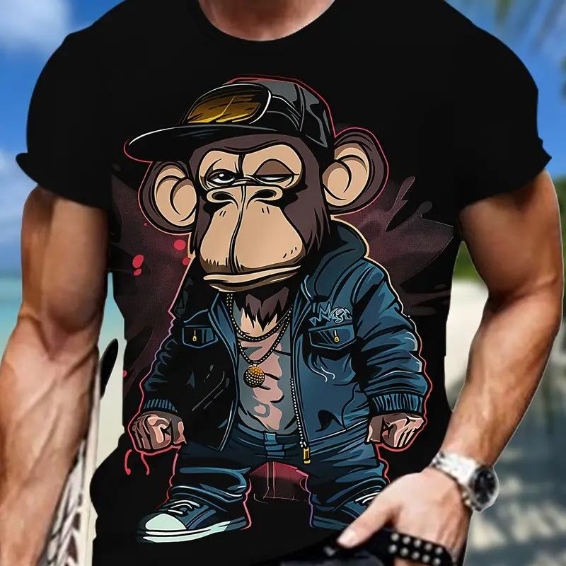 Летняя мужская футболка с коротким рукавом, 3D-принтом, уличная, с круглым вырезом, с коротким рукавом, топ
