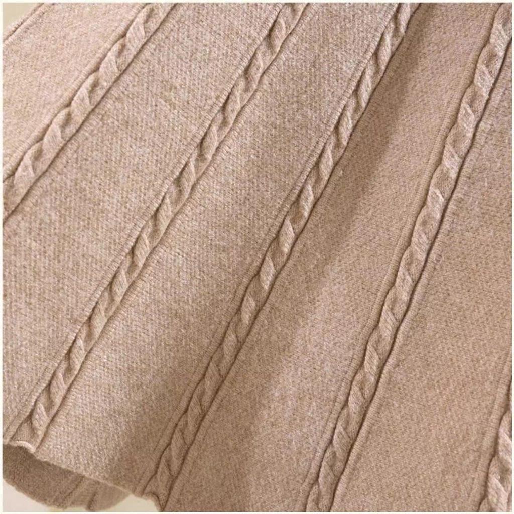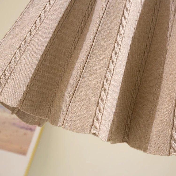 Мини-юбка А-силуэта с высокой талией в корейском стиле для женщин - Облегающая, Большого размера, Скрывающая бедра, Эффект драпировки, Большая расклешенная вязаная юбка-зонт